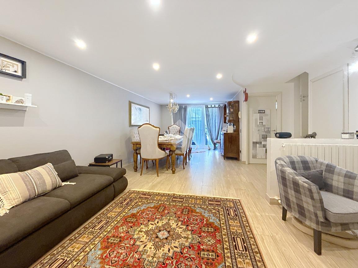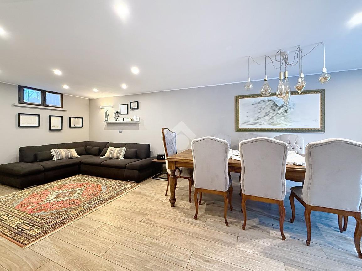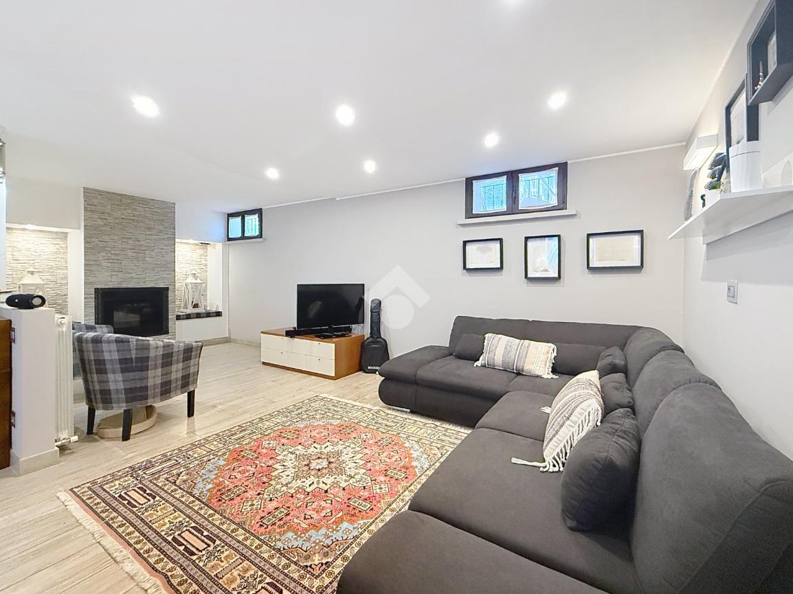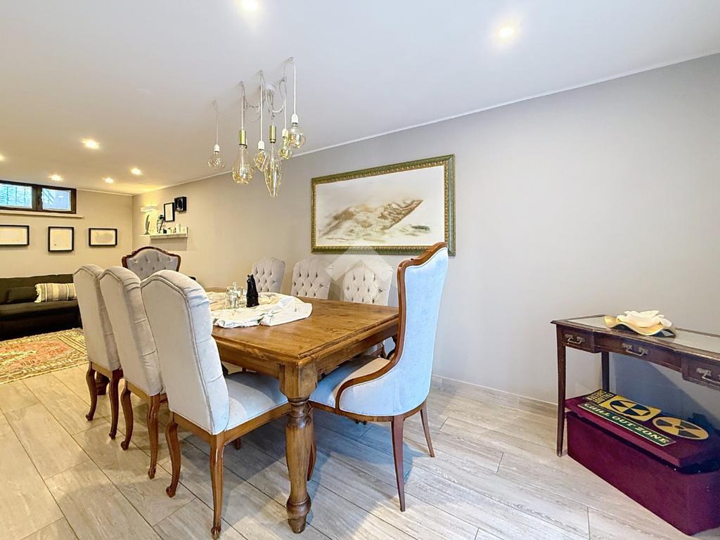 Completano la soluzione la taverna di circa 46 mq con il terzo bagno con box doccia e finestra, il garage di circa 19 mq, il giardino di circa 145 mq ed il balcone.