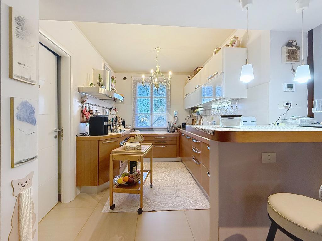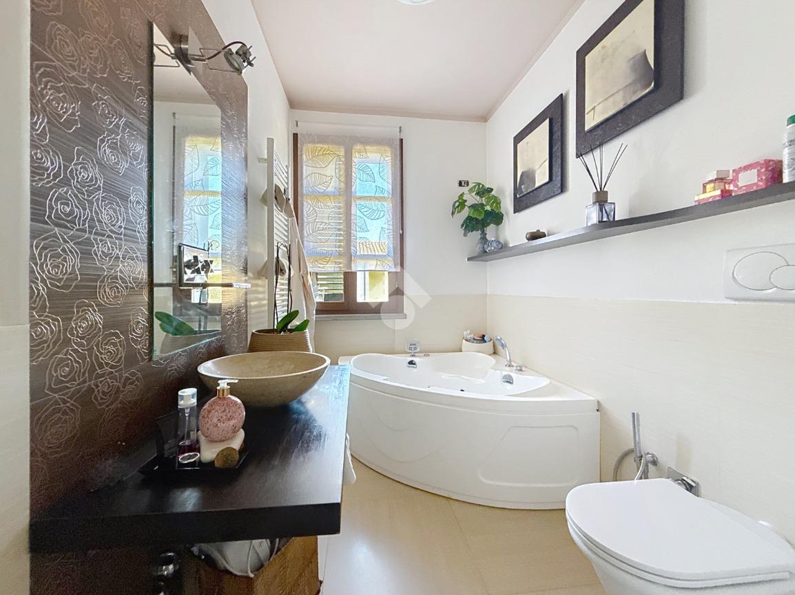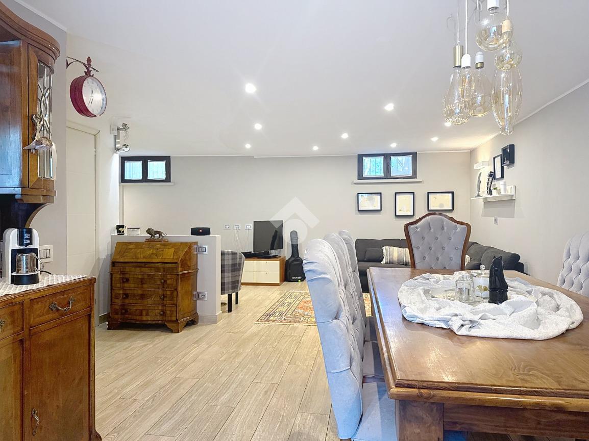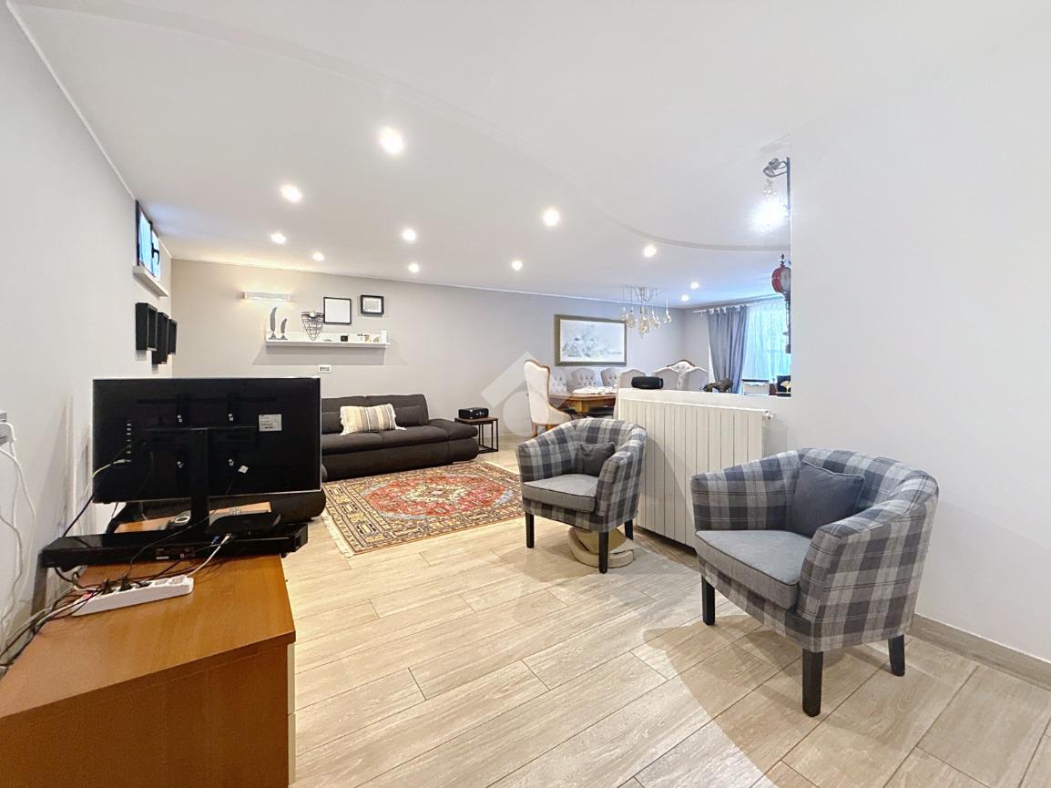 Completano la soluzione la taverna di circa 46 mq con il terzo bagno con box doccia e finestra, il garage di circa 19 mq, il giardino di circa 145 mq ed il balcone.